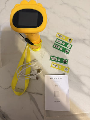 You get a microscope, wrist strap, USB cable, sample slide, and user manual—everything needed for an exciting start!